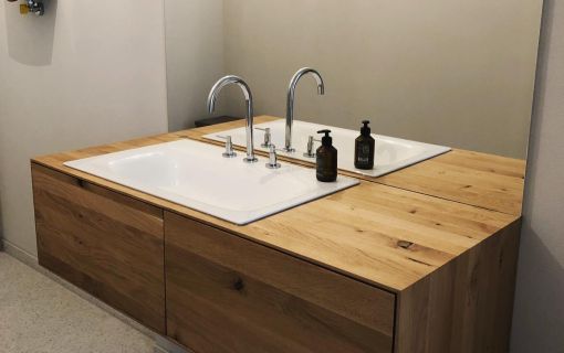 Maßgefertigtes Waschtischmöbel in Wildeiche mit Lack