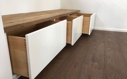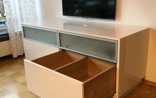 Dieses TV Möbel für einen Kunden in Stuttgart Untertürkheim wurde bewusst schlicht gehalten um die räumlichen Gegebenheiten nicht zu verkleinern.