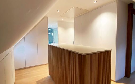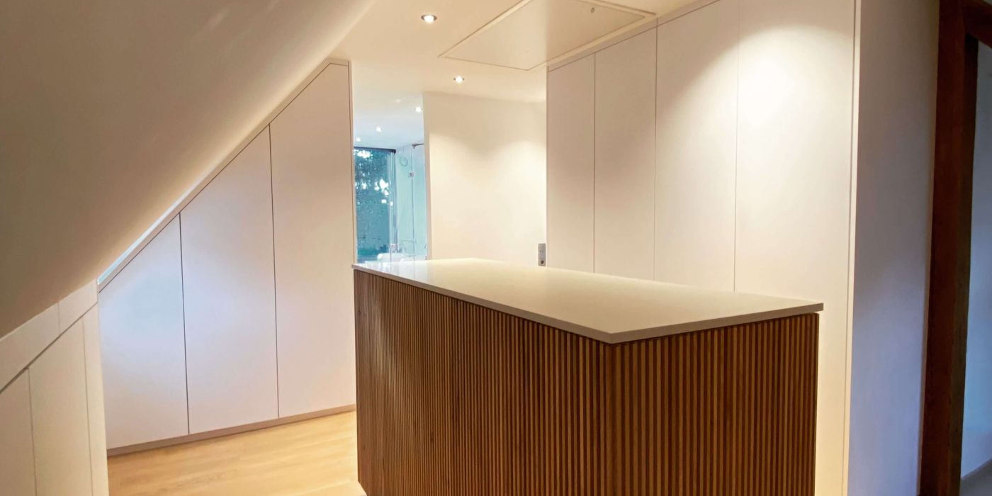 Geschmackvoll gestaltet wird der Raum zum Unikat. Kombination aus modernster Technik und edlen Hölzern und Furnieren lassen Herzen höher schlagen.